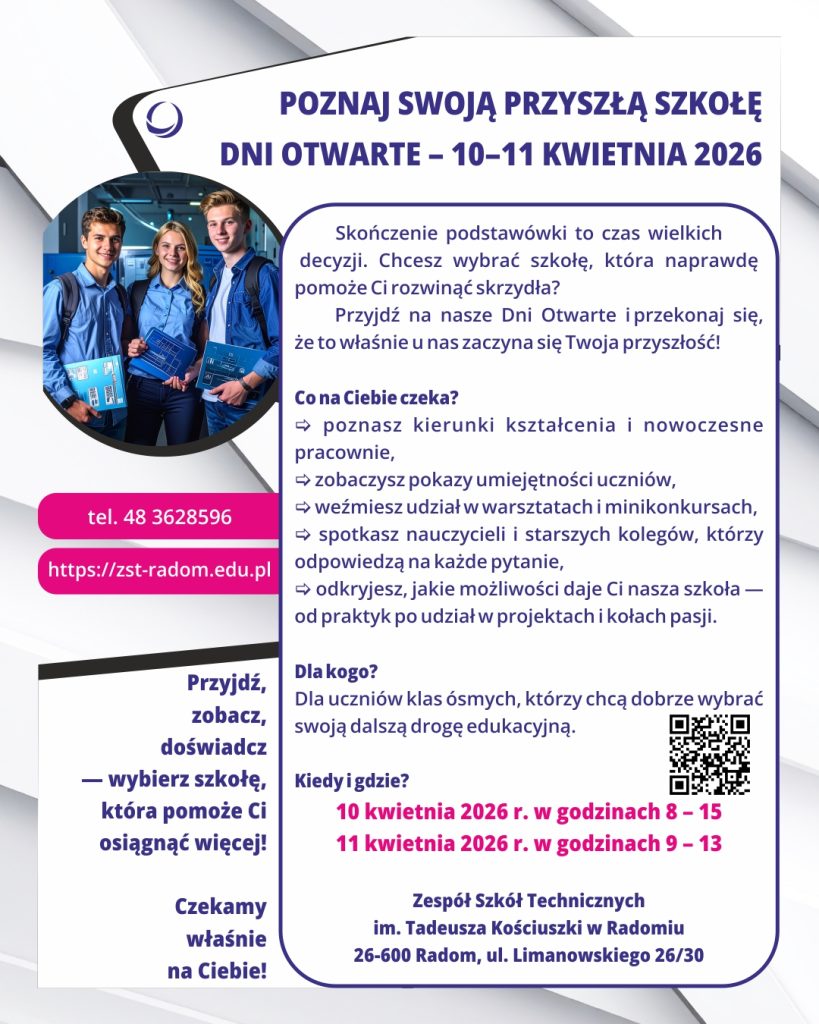 Serdecznie zapraszamy uczniów klas ósmych szkół podstawowych oraz ich rodziców na Dni Otwarte naszej szkoły. To doskonała okazja, aby poznać ofertę edukacyjną, porozmawiać z nauczycielami i uczniami oraz zobaczyć, jak wygląda codzienne życie szkoły. Przyjdźcie, zobaczcie i przekonajcie się, że to miejsce, w którym warto kontynuować naukę!