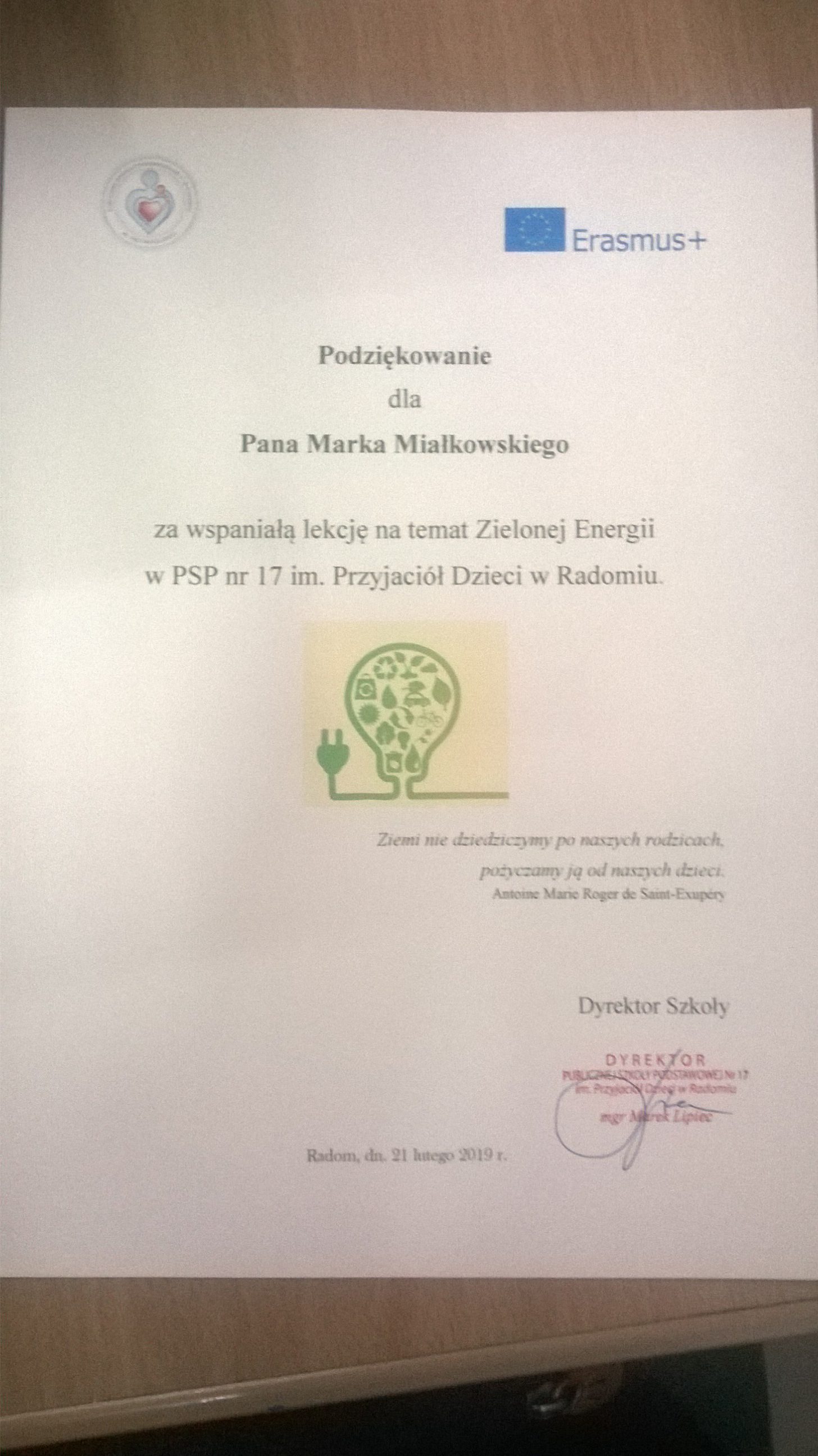 Projekt został zrealizowany pod kierunkiem nauczycieli: Monika Górecka-Grzywacz, Aneta Stankiewicz z PSP nr 17 w Radomiu. Zespół Szkól Technicznych reprezentowali Ireneusz Skóra i Marek Miałkowski.