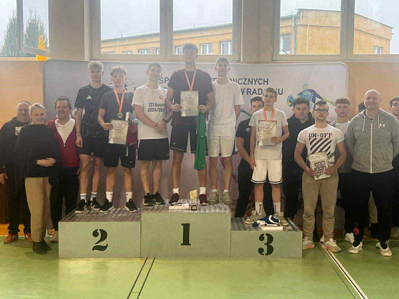 W Zespole Szkół Technicznych w Radomiu odbyły się coroczne zawody w tenisie stołowym chłopców, w których uczniowie rywalizowali o tytuł Mistrza Szkoły. Turniej przebiegł w sportowej atmosferze i zdrowej rywalizacji. Gratulacje dla wszystkich zawodników za zaangażowanie oraz dla zwycięzców za wywalczone miejsca na podium. Dziękujemy organizatorom: Albert Siekiera, Maciej Miter, Robert Śledź, a także wielkie podziękowania dla Rady Rodziców za ufundowanie medali, dyplomów i nagród rzeczowych. Mistrzem Szkoły został Maksymilian Cieślik 4M, srebrny medal wywalczył Szymon Kot, a medal brązowy przypadł Mateuszowi Jaskulskiemu z klasy 1OZ. Nagrody zwycięzcom wręczyła pani vice dyrektor Monika Mazur.
