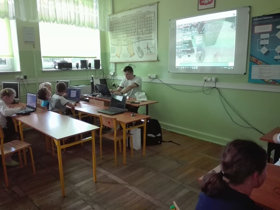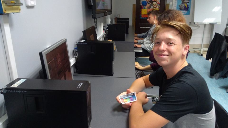 W miesiącu maju młodzież Zespołu Szkół Technicznych im. Tadeusza Kościuszki w Radomiu uruchomiła zajęcia dla uczniów szkół podstawowych z bardzo popularnej gry Minecraft. Wykorzystując potencjał jej specjalnej wersji: Minecraft Education Edition pokazywali, jak można nauczyć się np. języka angielskiego, matematyki (klasy młodsze) oraz programowania (klasy starsze). Odwiedzili 6 szkół podstawowych z terenu Radomia (każda z nich mogła skorzystać z tej oferty, a na dodatek, jeżeli nie mogła nas przyjąć zapraszaliśmy na zajęcia do siebie). Przeszkolili około 300 uczniów z klas od 2 do 7.